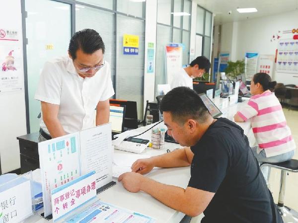 在市高新区政务服务大厅,工作人员为办事企业办理相关业务。 本报记者 韩文洲摄