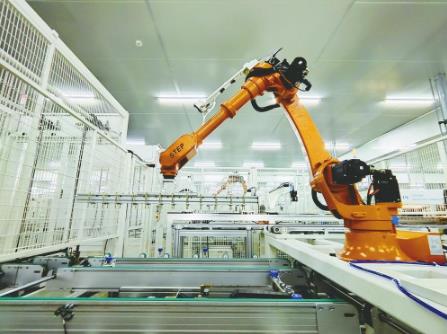日前,华创国晶(河北)新能源有限公司生产车间内,机械手臂正在有序作业。 (资料图片)