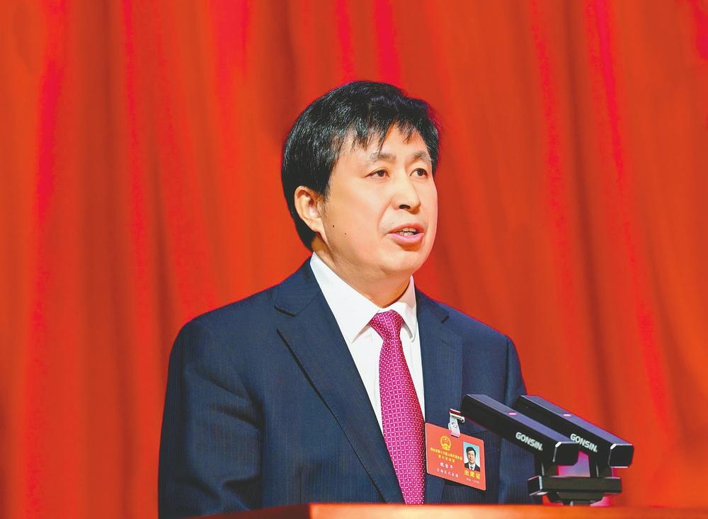 魏吉平作邢台市人大常委会工作报告。本报记者 郝德明摄