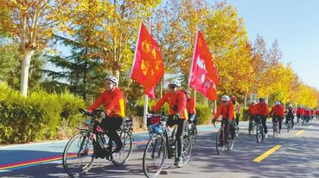 近日,自行车骑行爱好者在风景如画的七里河北岸健身绿道骑行,体验运动与自然交融的乐趣。