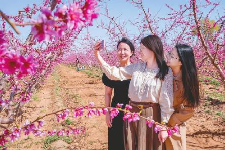4月1日,游客在信都区会宁镇十里桃园踏青赏花。当日,会宁镇第五届桃花季文化活动开幕,吸引了周边市县众多游客前来踏春赏花,助力当地乡村文旅经济蓬勃发展。