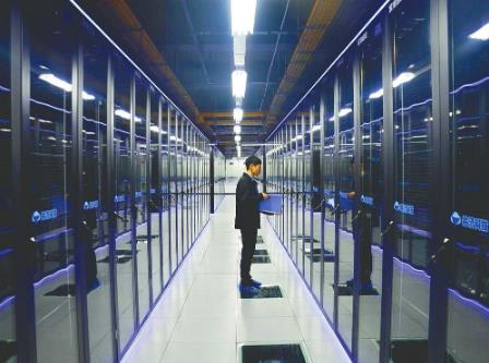 近日,在市高新区大数据产业园的太行智算中心项目机房,技术员在巡控服务器机房。