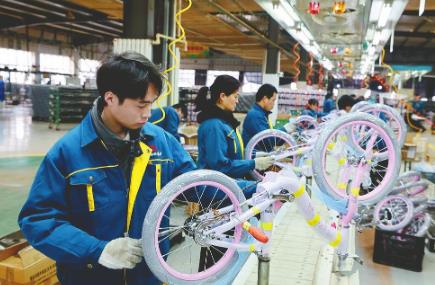 近日,平乡县一公司车间内,员工在赶制童车出口订单。