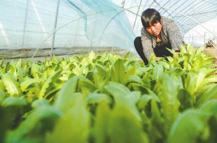 12月18日,农民正在市经开区计春家庭农场大棚内收割蔬菜。