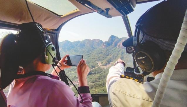 “空中看太行”直升机主起降点设在前南峪,辅助起降点为邢台大峡谷。乘客在空中可俯瞰雄浑壮阔的山川美景及抗大1940街区、抗大陈列馆、古村落、抗大路等人文景观,单程仅需约10分钟。 本报记者 韩文洲摄