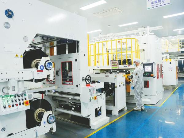 近日,在市高新区邢东(河北)锂电科技有限公司生产车间,工人在锂电池生产线赶制订单产品。
