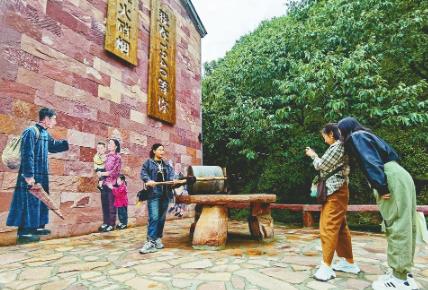 9月21日,游客在信都区浆水镇抗大1940街区打卡游玩。