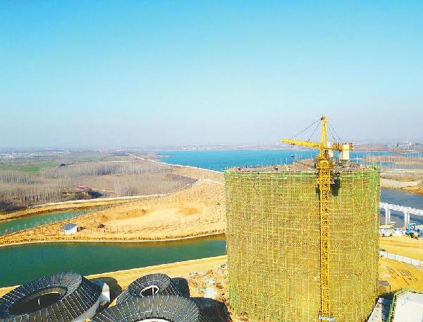 近日,在内丘县沙语石旅游项目空中图书馆施工现场,建设者们正在顶层平台进行钢筋绑扎作业。