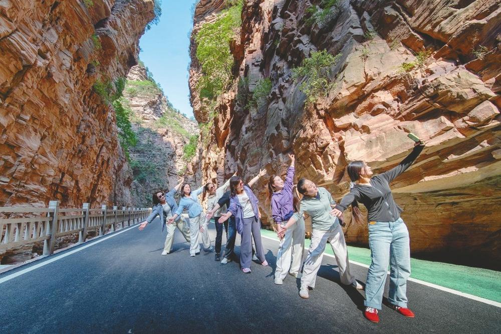 5月27日,来自沧州市的游客在邢台大峡谷景区打卡拍照。